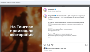 Редакция CaspianLife обратилась с запросом в пресс-службу ТОО «Тенгизшевройл» (ТШО) с просьбой прокомментировать появившуюся в социальных сетях информацию о происшествии на месторождении Тенгиз. Компания предоставила краткий комментарий, который мы публикуем полностью без изменений: